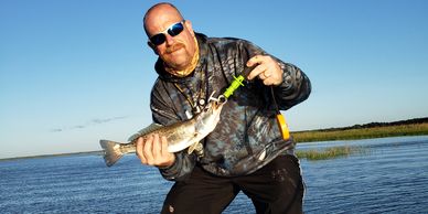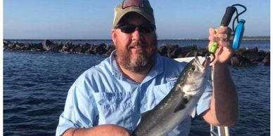 Besides our major game fish caught in the bays and creeks, Ladyfish (poor mans Tarpon) black sea bass, Pompino, Jacks, Sheephead, Huge rays and others inhabit the area and are often caught.